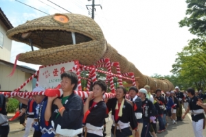 IVUSAでは、2004年より「ぜひ自分の故郷に貢献したい」という関川村出身の学生の思いから活動が実現し、昭和48年8月28日に発生した「羽越水害」の慰霊と、昔から村に語り継がれている「大蛇伝説」をテーマとした、「えちご関川大したもん蛇まつり」の運営サポートを毎年行なっています。IVUSAは5回目の参加より大蛇神輿を担がせていただくようになり、村の方との交流を通じて一緒にお祭りを盛り上げてきました。