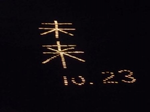 蝋燭で「未来 10.23」と文字を作り、灯りを燈しました。