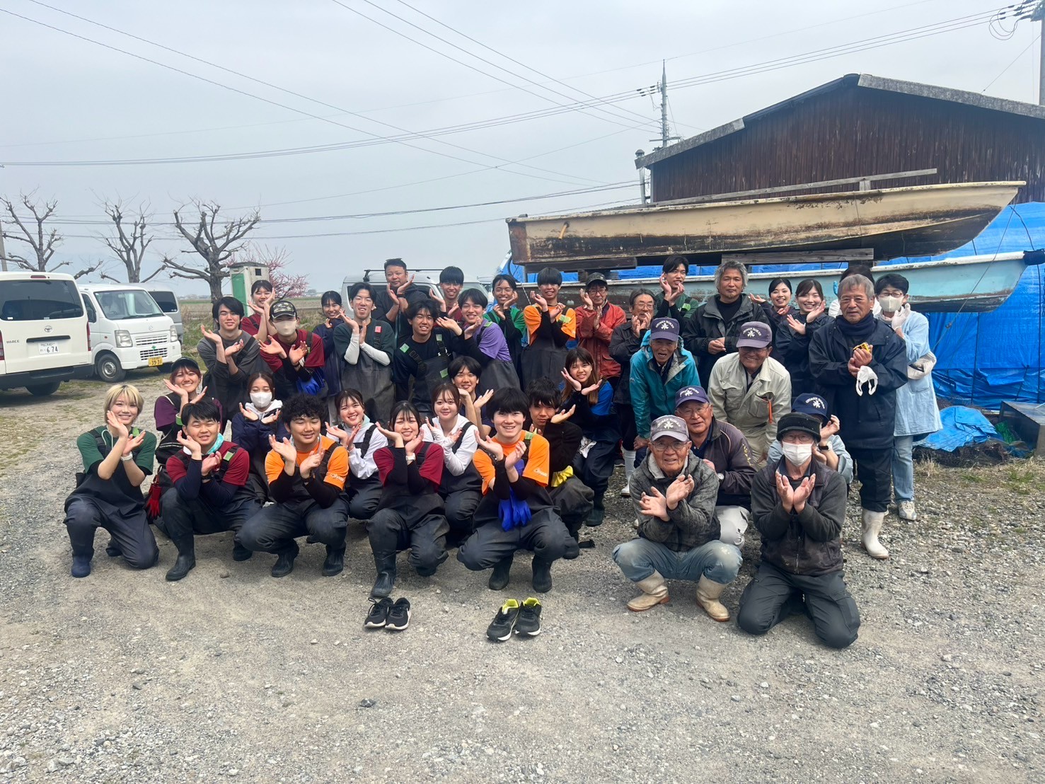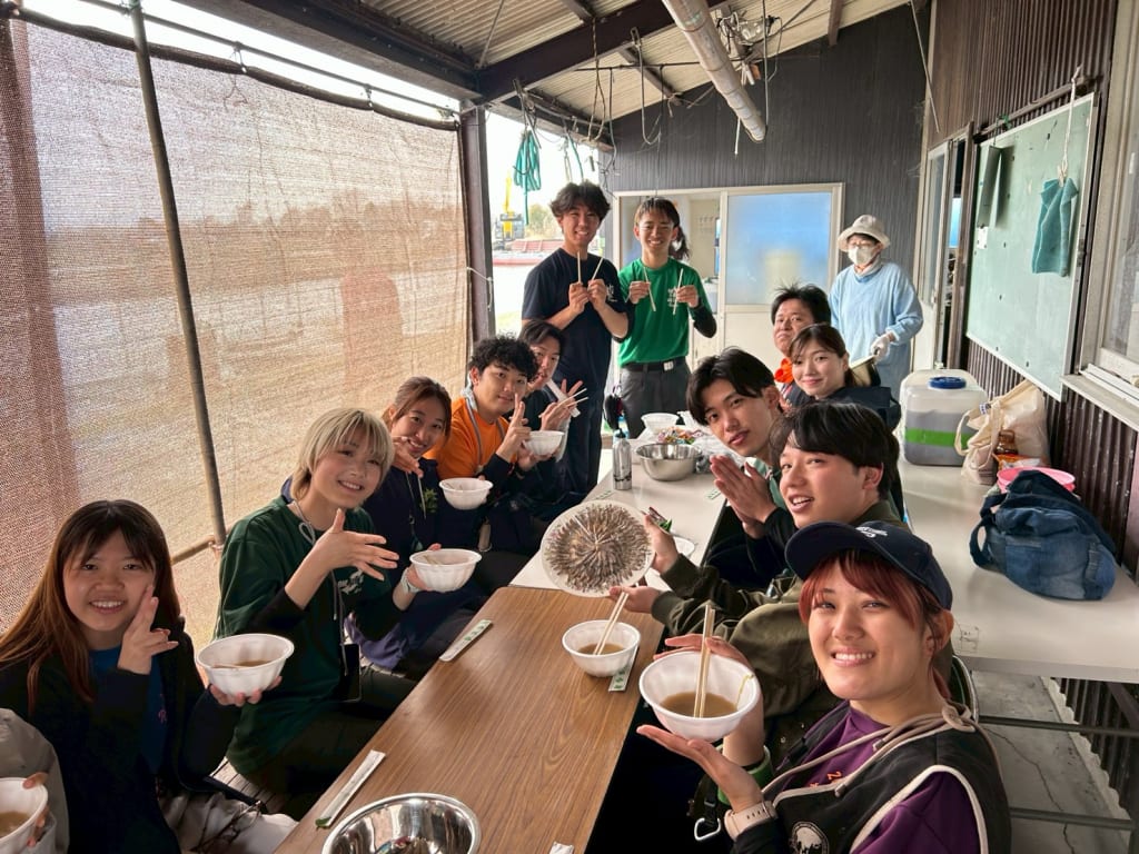 IVUSA学生23名、卒業生2名、事務局1名、認定NPO法人びわこ豊穣の郷3名、玉津小津漁業協同組合10名の計39名が参加しました。