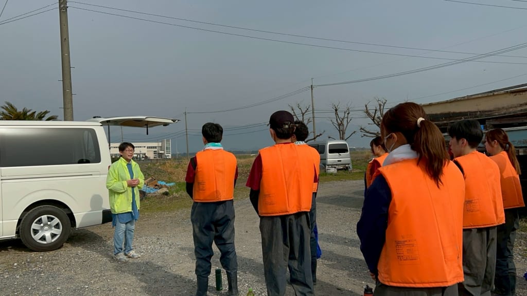 また、玉津小津漁業協同組合の赤井様から、「外来水草が次々生えてくるが、漁業で捕った魚の消費は凄く減っています。若い方が琵琶湖の魚を食べないと漁業は終わってしまうので、活動後に琵琶湖の魚を食べていただいて、是非その事を発信してください」とお話を頂きました。