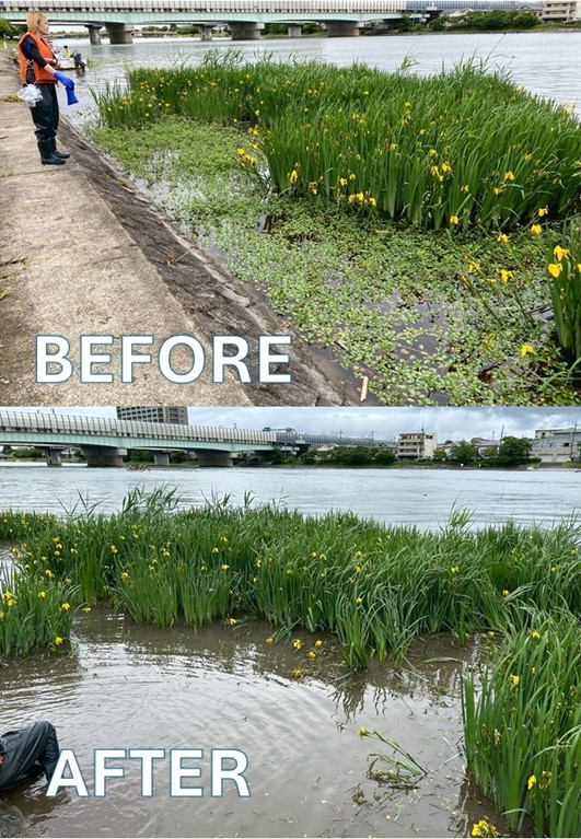 また瀬田川は琵琶湖→瀬田川→宇治川→淀川→大阪湾と繋がっており、瀬田川でオオバナを除去することは、瀬田川の生態系保全だけでなく、下流の淀川等の保全にも繋がります。