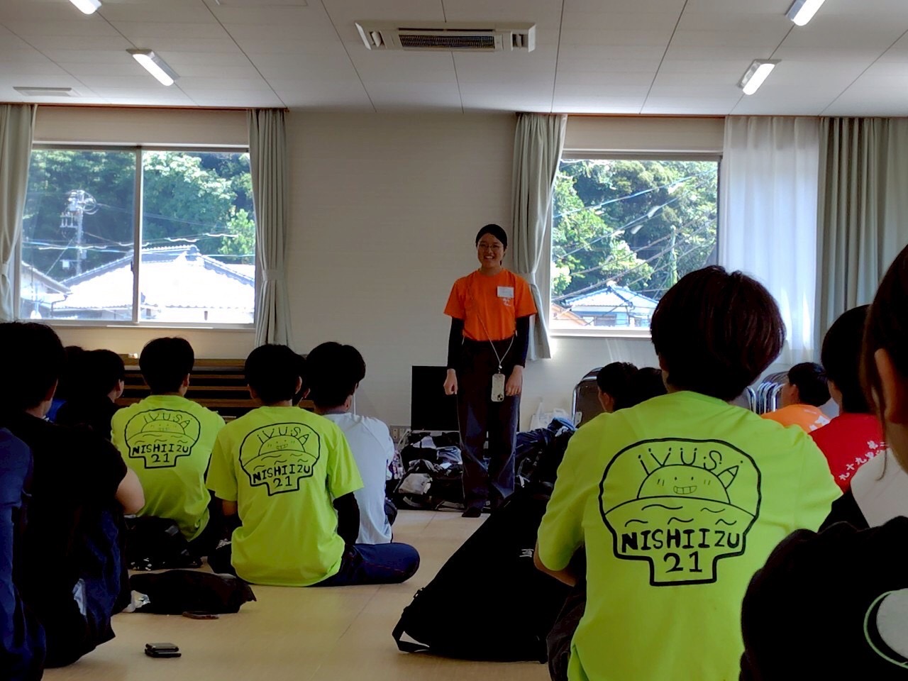 1日目は昼頃に西伊豆町に到着した後、活動のリーダーから「この4日間、受け身ではなく主体的に動くようにしよう」と隊員に向けて挨拶がありました。