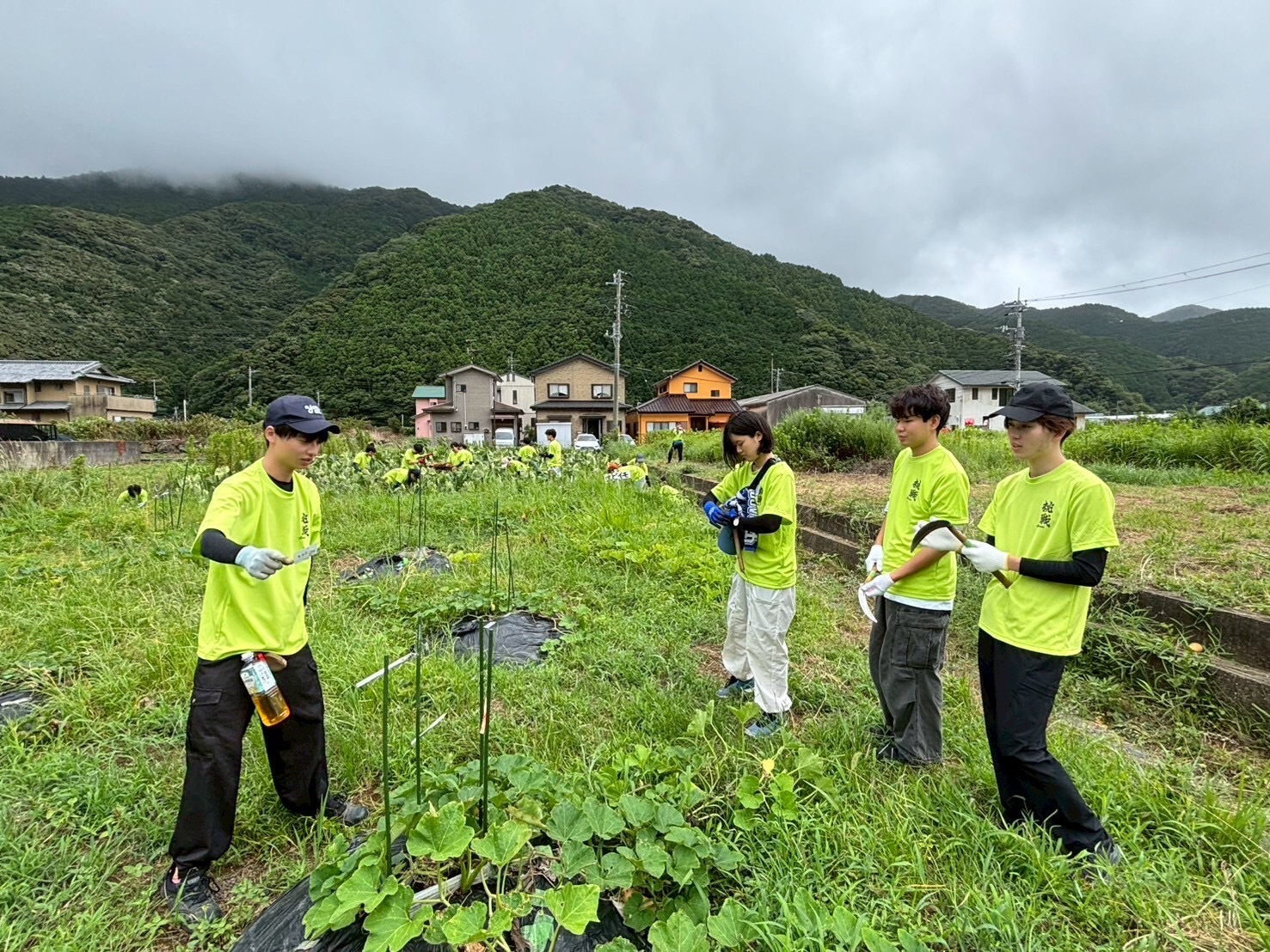 その後IVUSAが管理するあめみや農園に移動し、雑草抜きなどの畑作業に取り掛かりました。蒸し暑い天気の中で困難もありましたが、学生同士が力を合わせて1日目の畑作業をやり遂げました。