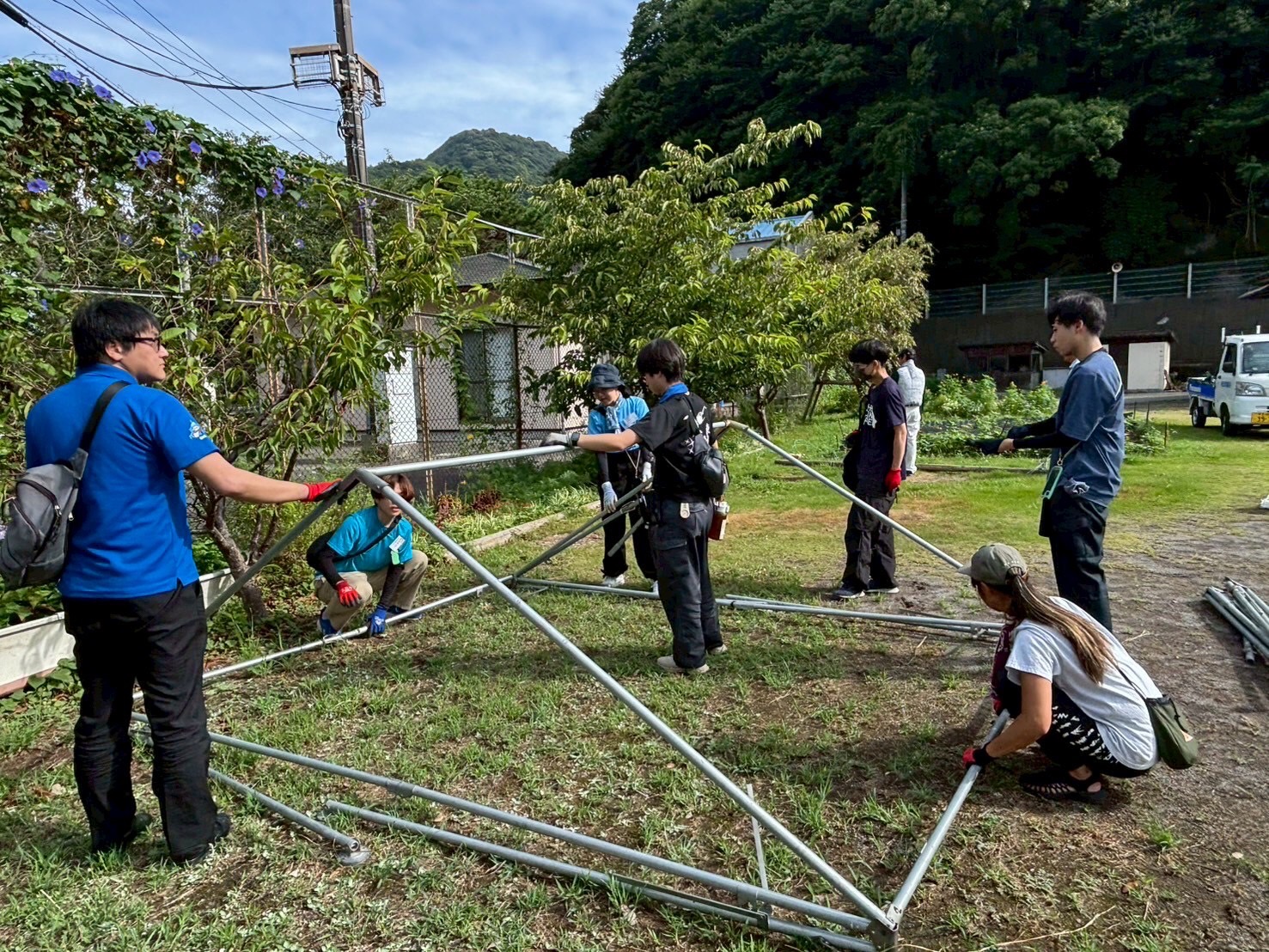 2日目はお祭りの準備をする学生と、畑作業をする学生の二手に分かれて作業しました。安良里夏祭りの準備では、地域の方々と交流を深めながら協力して会場準備を進めました。