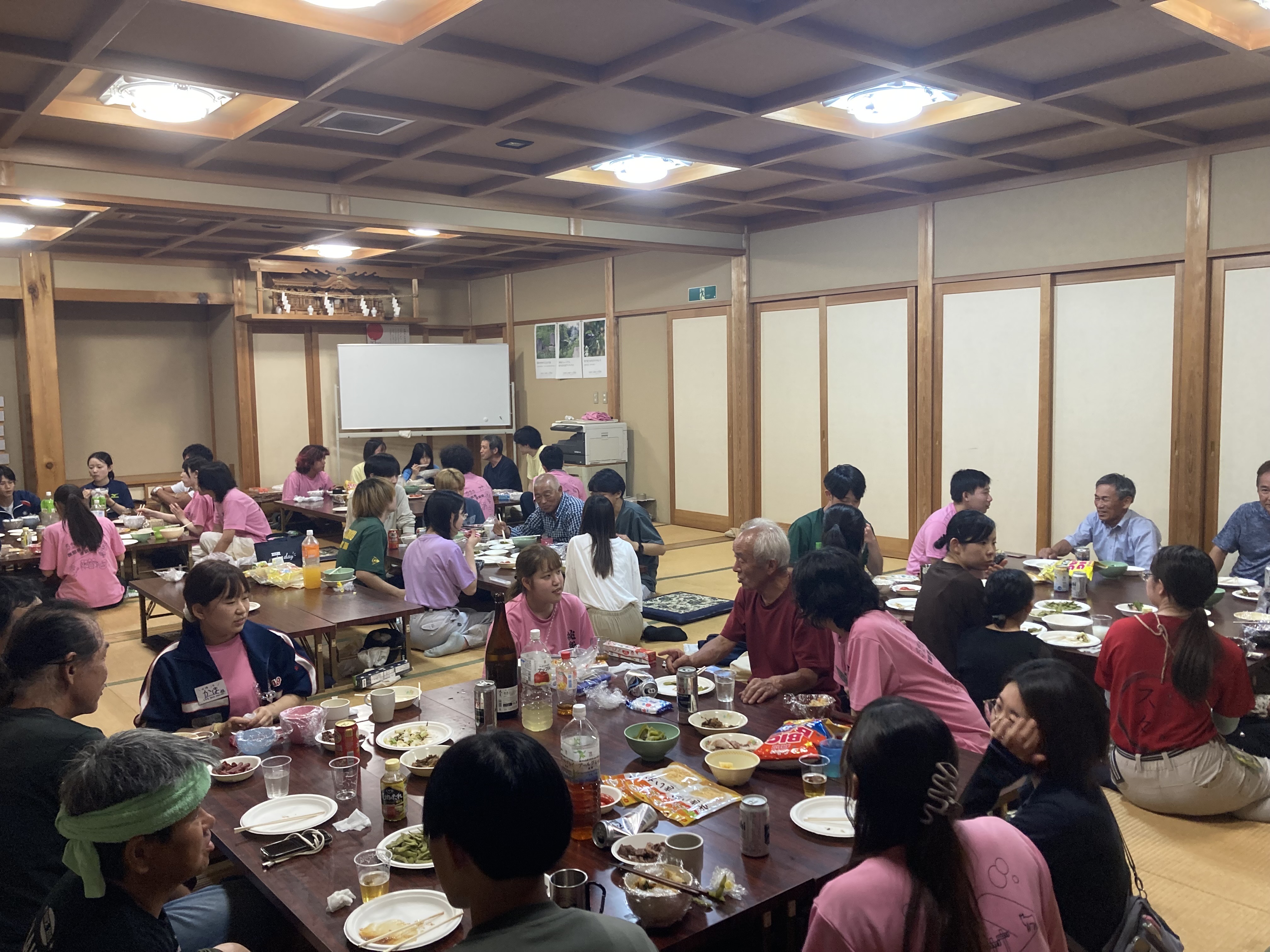 また、活動4日目の夕方には、地域の方をお招きした交流会を行いました。雨が降る予報だったため、急遽室内での実施に変更となり慌てる場面もありましたが、終始、賑やかな楽しい場となりました。