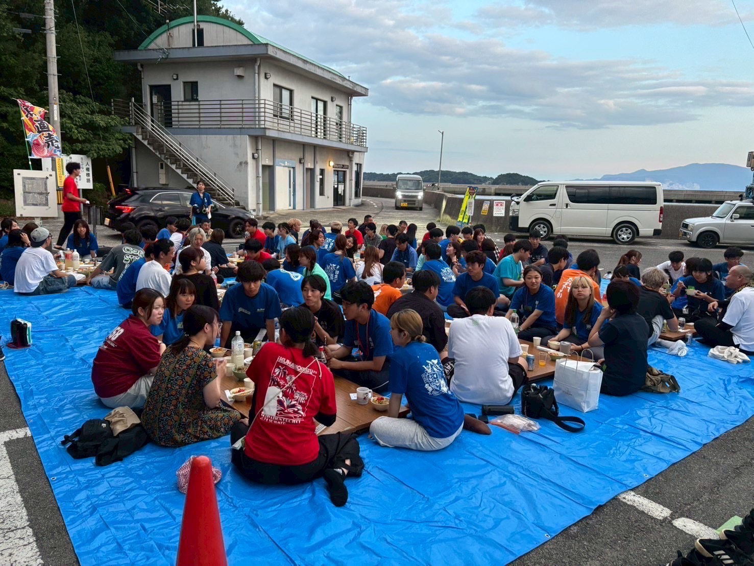 その後、地域の方と交流会を実施し、和気あいあいとした雰囲気の中、日生の豊かな海産物を使った料理をみんなで囲みながら交流することができ、同時に各々が疑問に思っていることについて地元の方から意見を頂ける良い機会になりました。