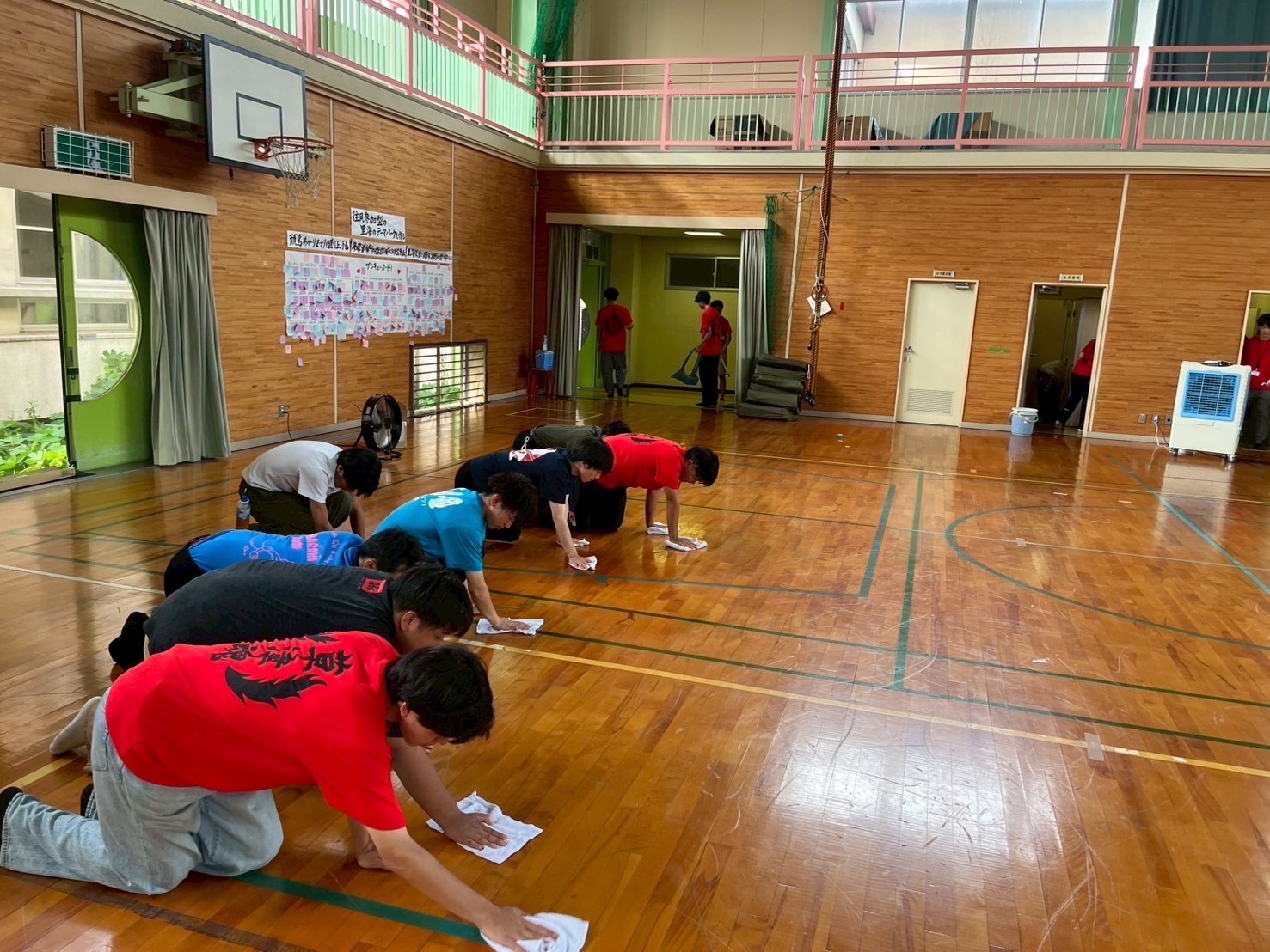 最終日は今回の活動で利用させて頂いた宿舎の清掃から開始しました。前日に実施した海岸清掃のようにお互いに声を掛け合いながら全力で取り組みました。