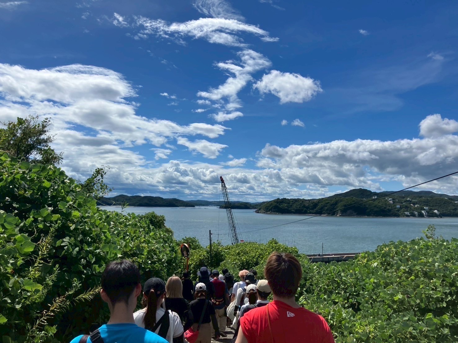 午後は班ごとに頭島散策と頭島あかりまつりの準備をしました。頭島散策では頭島の街並みや自然に触れ、日生諸島の魅力を直接感じました。まつりの準備では、IVUSAの活動紹介ポスターの作成や会場設営等を行いました。その中でも灯篭作りでは、現場を先導していただいた頭島あかりまつり実行委員会の方々や行灯に貼る子どもたちの絵から住民の方々の温かさを実感しました。