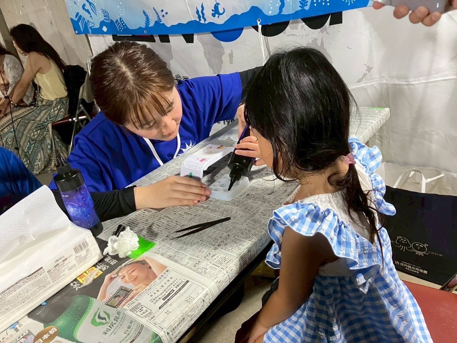 会場内のIVUSA企画ワークブースでは、マイクロプラスチックを活用したキーホルダーとネックレス作りを行いました。多くの子どもたちにお越しいただき、楽しく体験してもらいながら、プラスチック問題についても考えるきっかけを提供することができました。