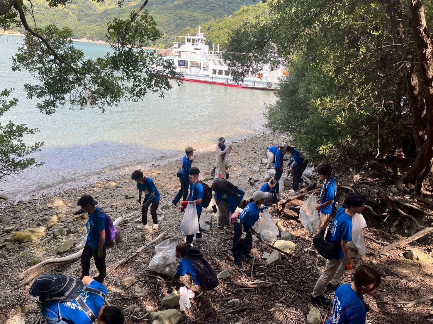 そして、1時間半の活動で45L袋を合計106袋相当回収することができました。帰りの船の中で班ミーティングを行い、清掃活動をして思ったことや考えたことを班で共有しました。
