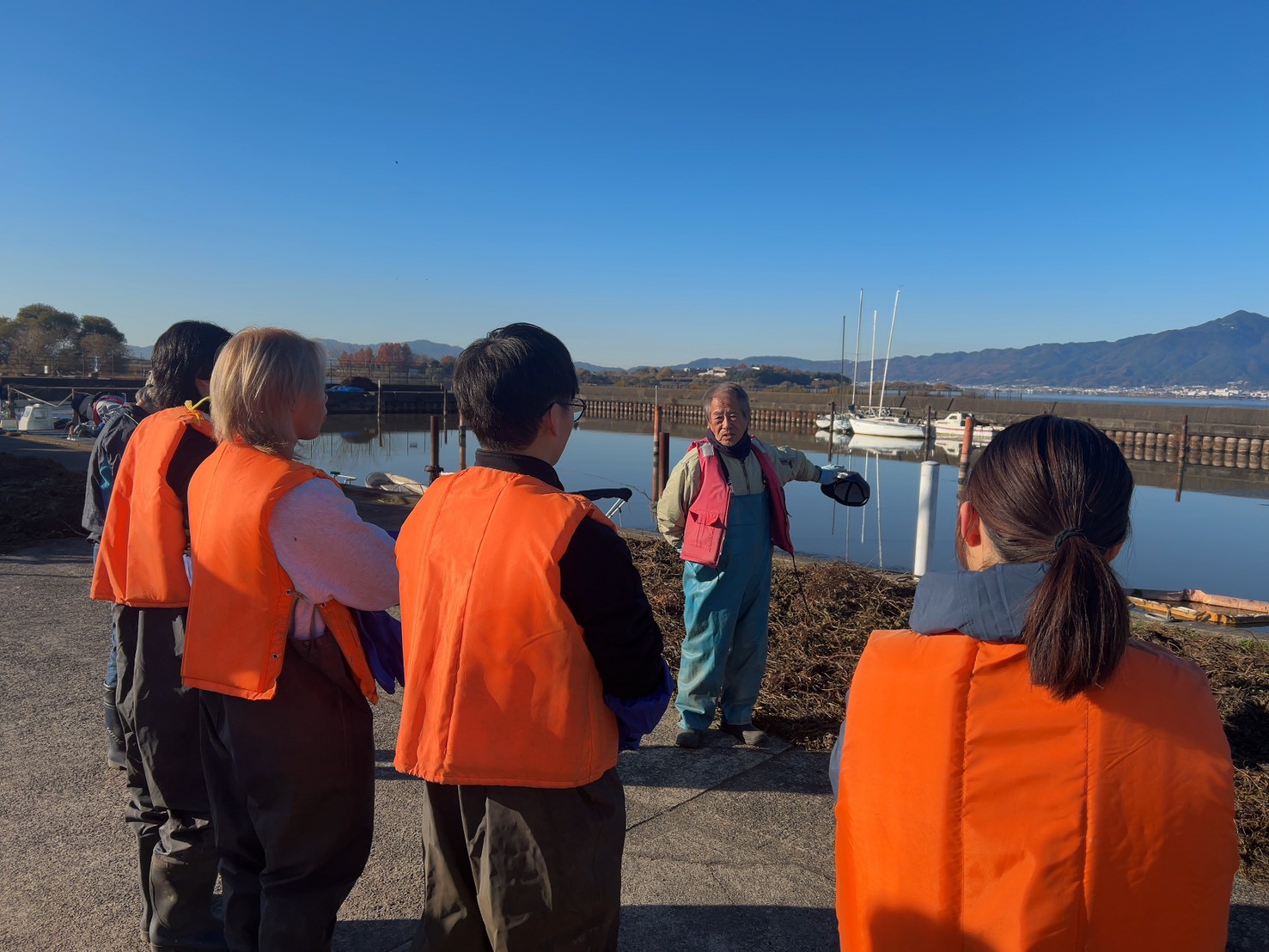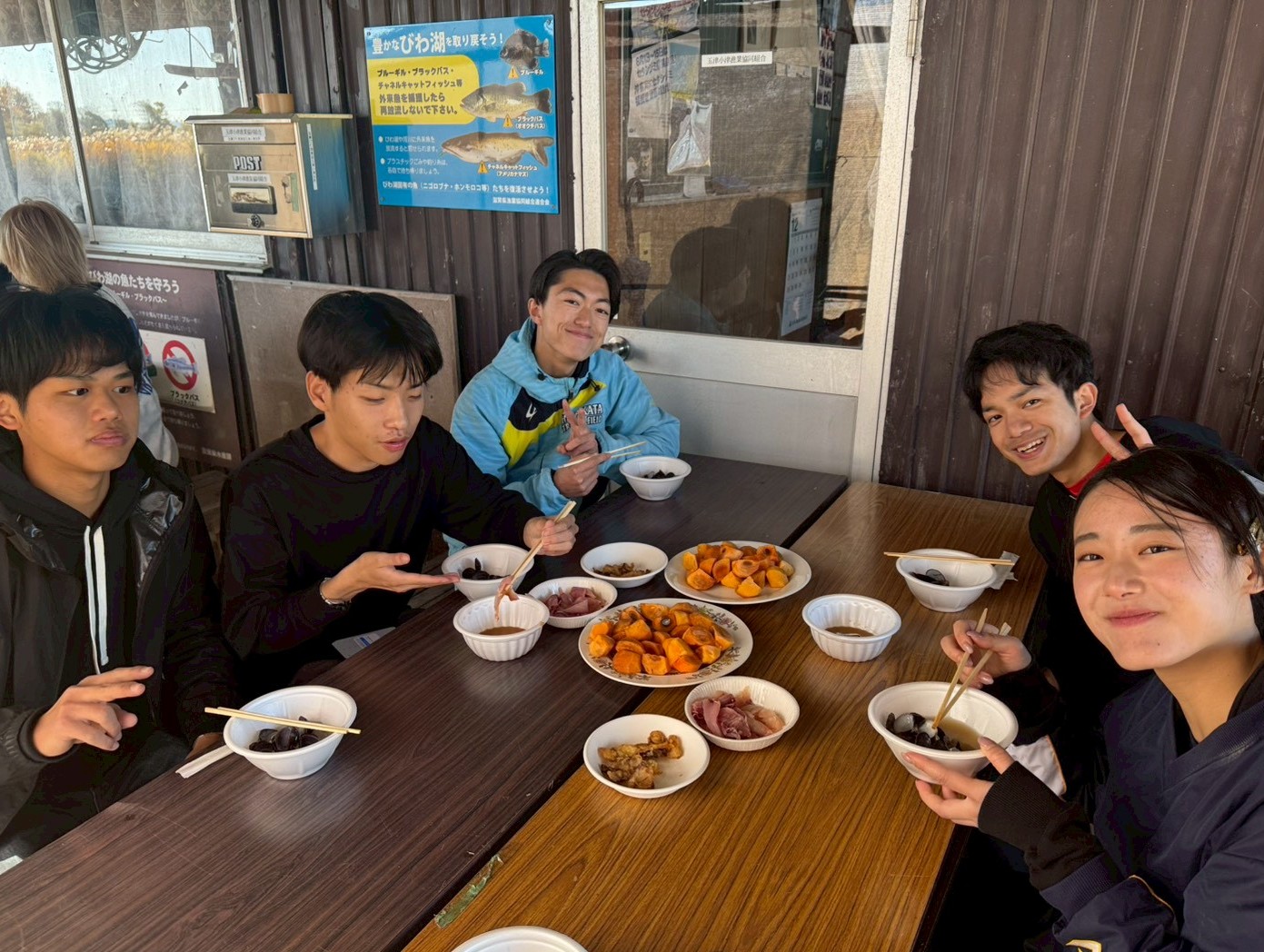 昼には、玉津小津漁業協同組合と認定NPO法人びわこ豊穣の郷の方々より、琵琶湖で取れた鯉の刺身や唐揚げなどの料理を用意していただきました。初めて食べた鯉の唐揚げは淡白で琵琶湖を感じられる味わいでした。