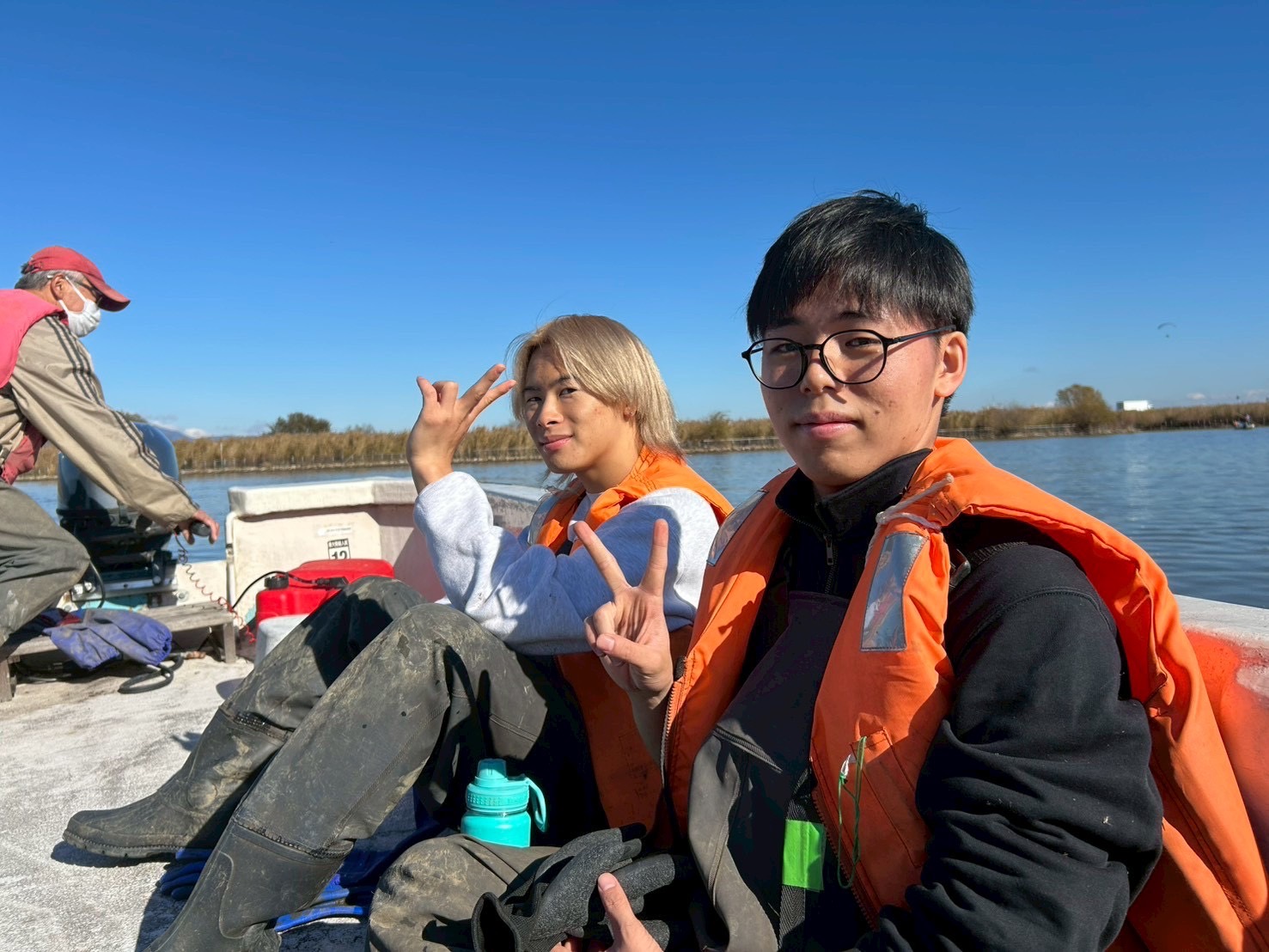 今回の活動場所であるヨシ植栽地までは漁船で移動しました。