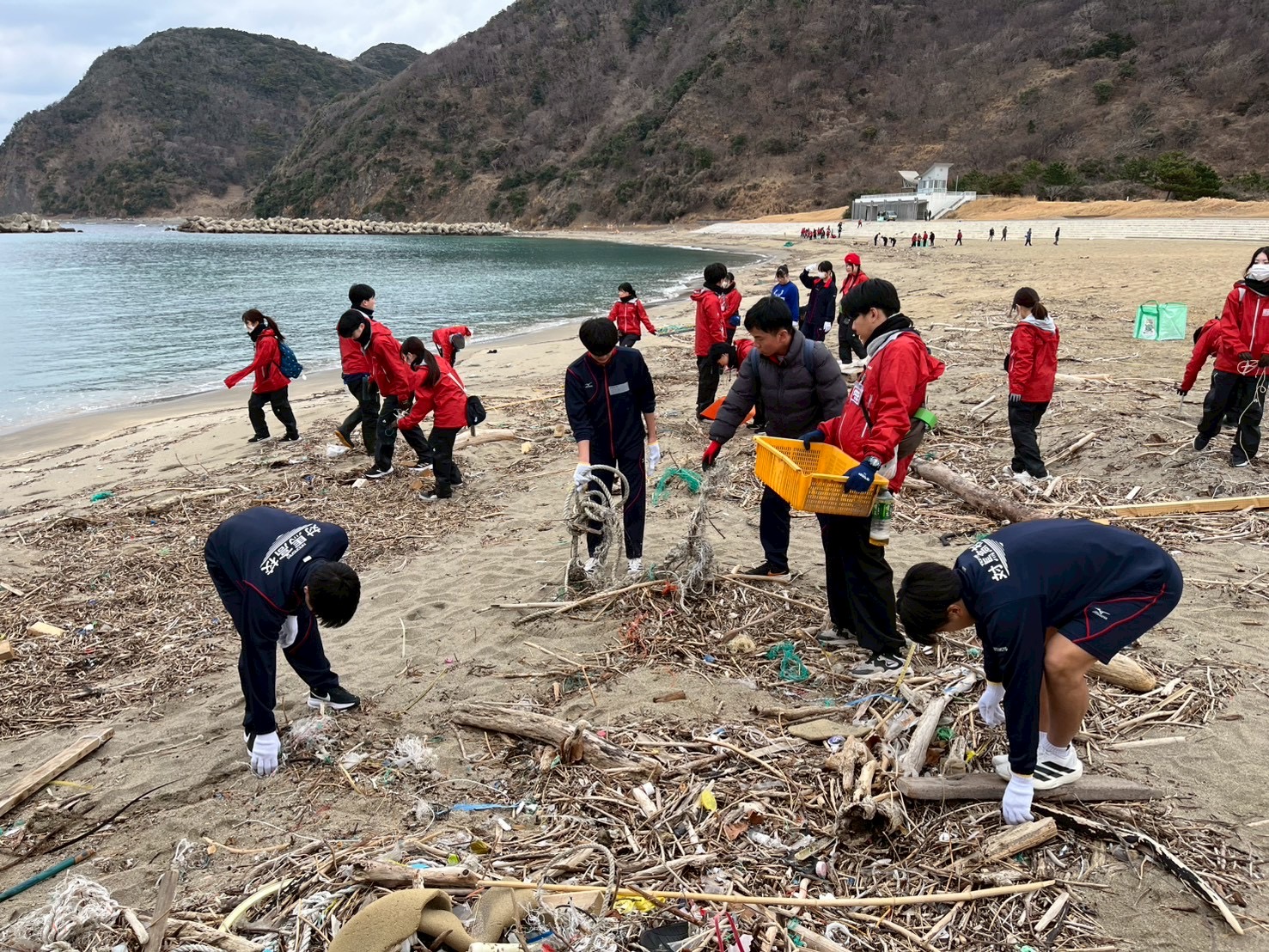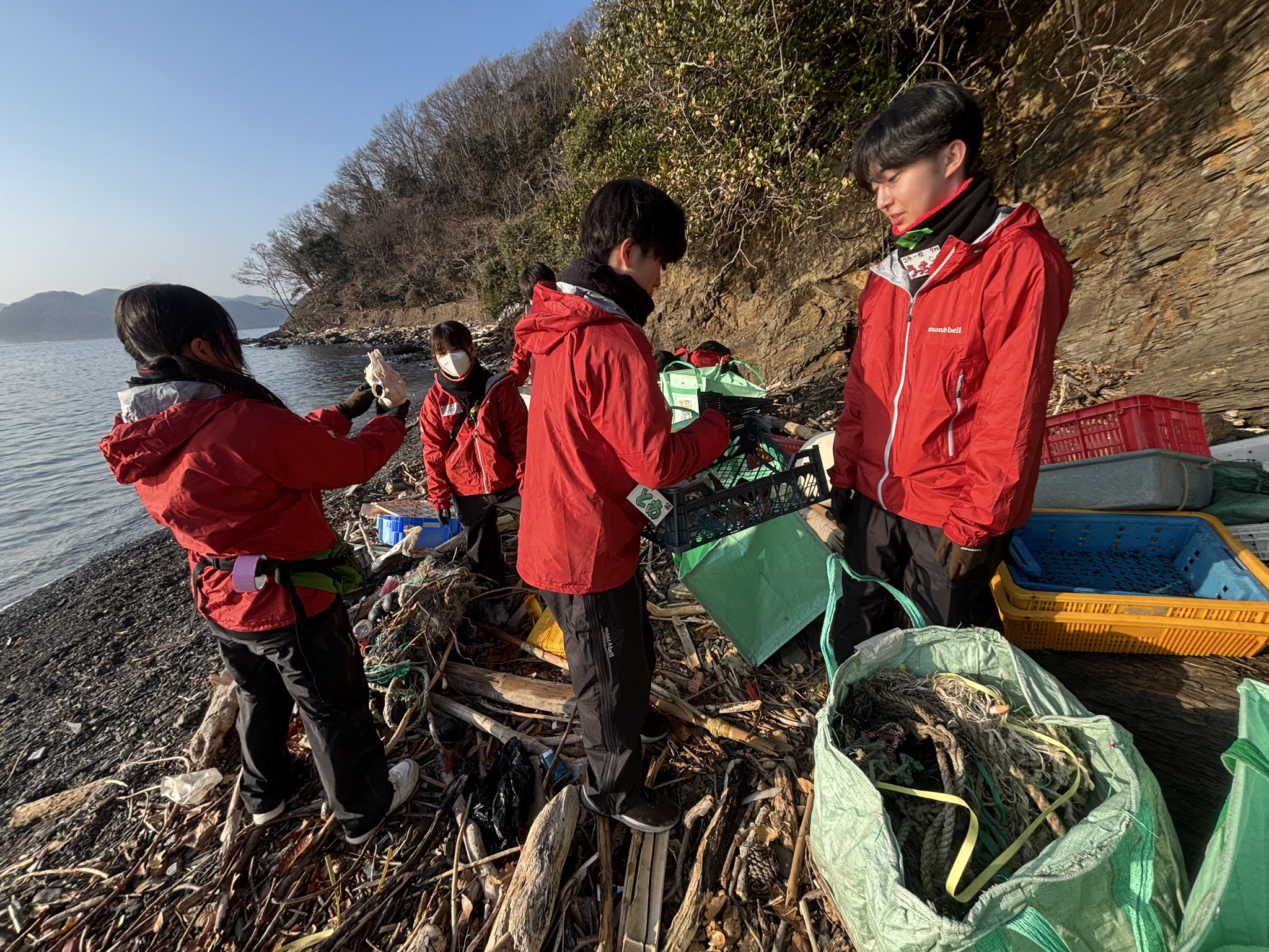 活動3日目は上槻海岸を清掃しました。清掃活動の最終日ということもあり、隊員たちは改めて気を引き締め、一つひとつの作業に真剣に向き合いました。隊員同士が掛け声をしながら作業を行ったことで、スムーズに回収することができました。