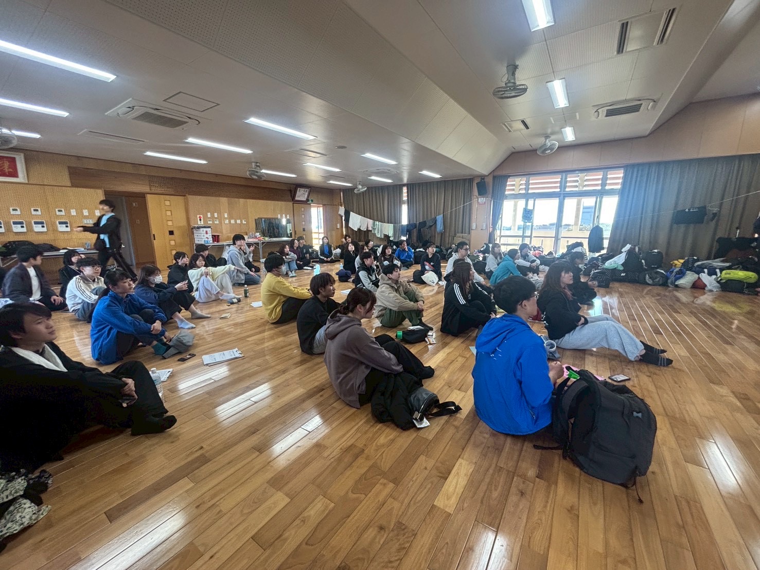 活動初日の14日には、那覇空港で集合後、宿舎である真栄平公民館にて結団式を行いました。