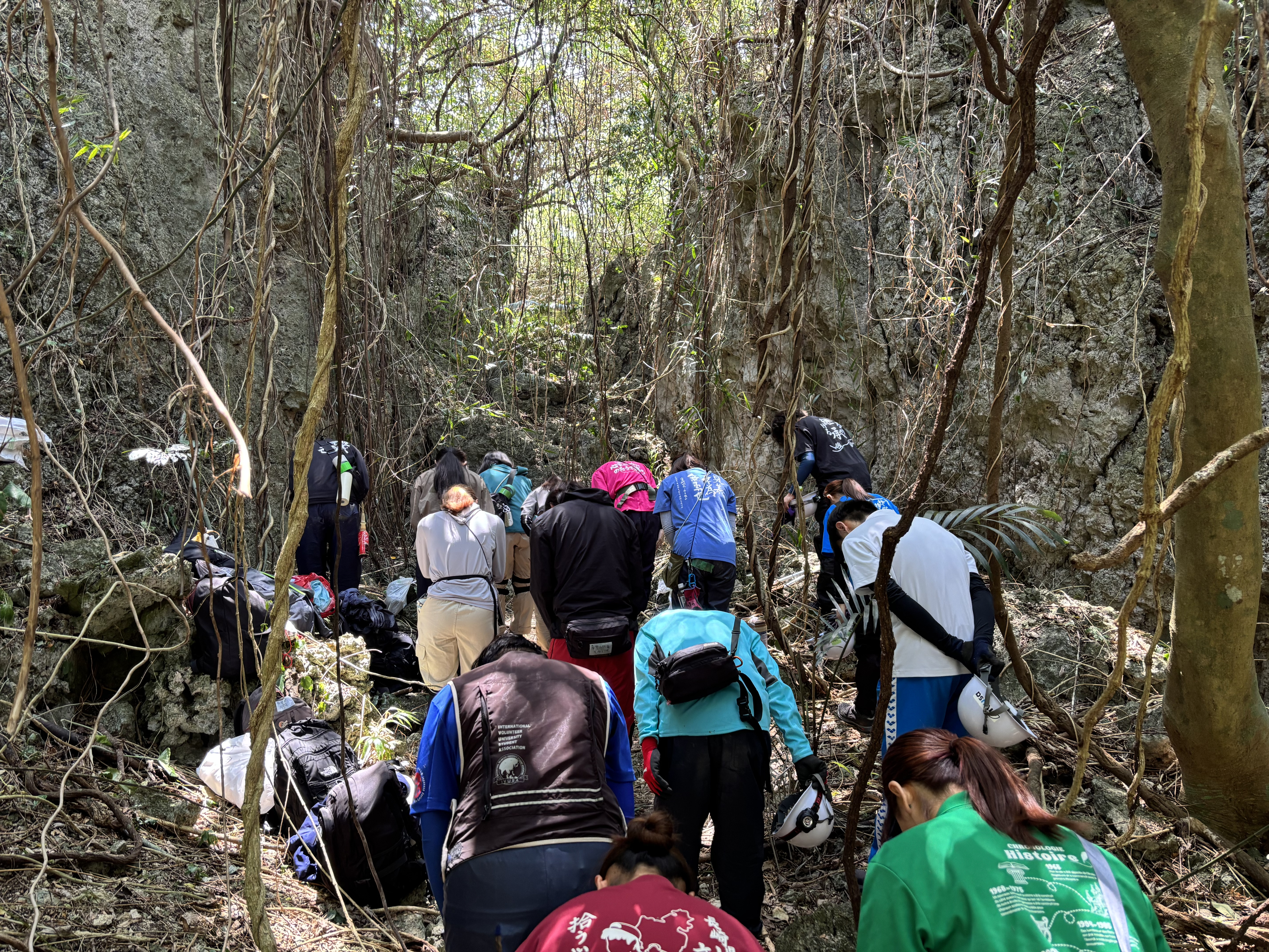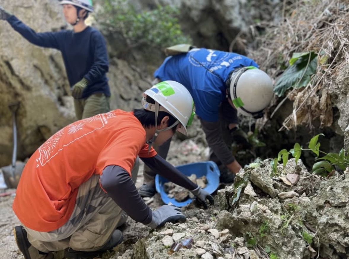 活動3日目から5日目にかけては、摩文仁にて遺骨収集活動を行いました。戦後80年が経過した現場は、険しい崖や生い茂る草木に覆われており、当時の厳しい環境がそのまま残っているようでした。