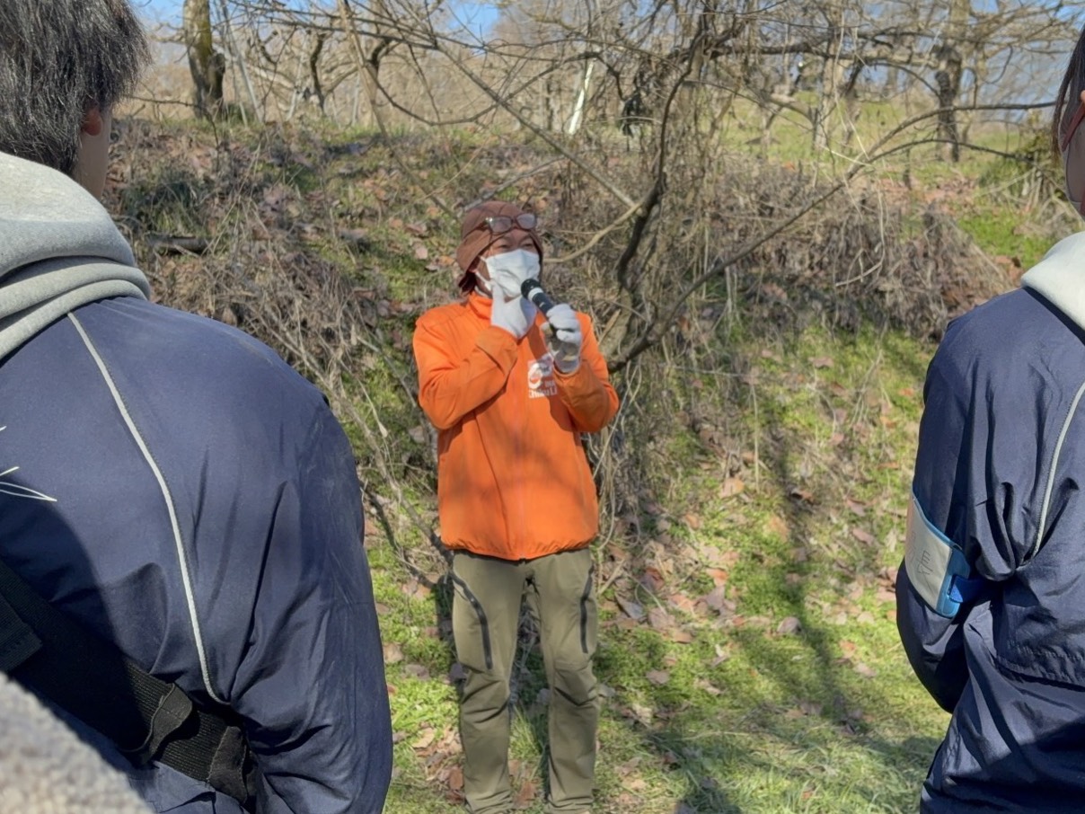 最初に開会式を行い、いなだに竹Links代表の曽根原さんから、「学生はいつもポジティブに、モチベーション高く取り組んでくれて助かるしありがたい。竹林整備をしても活用していかないと朽ちていってしまう。将来のビジョンを考え、共有しながら楽しんで作業して欲しい」とお話をいただきました。