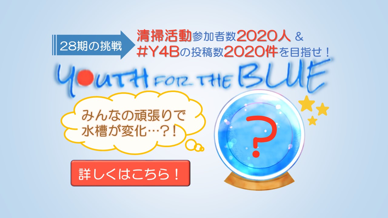 そこで今年、28期では、「Youth for the Blue 2020」をコンセプトに、全会員一丸で、海ゴミ問題に取り組みます。